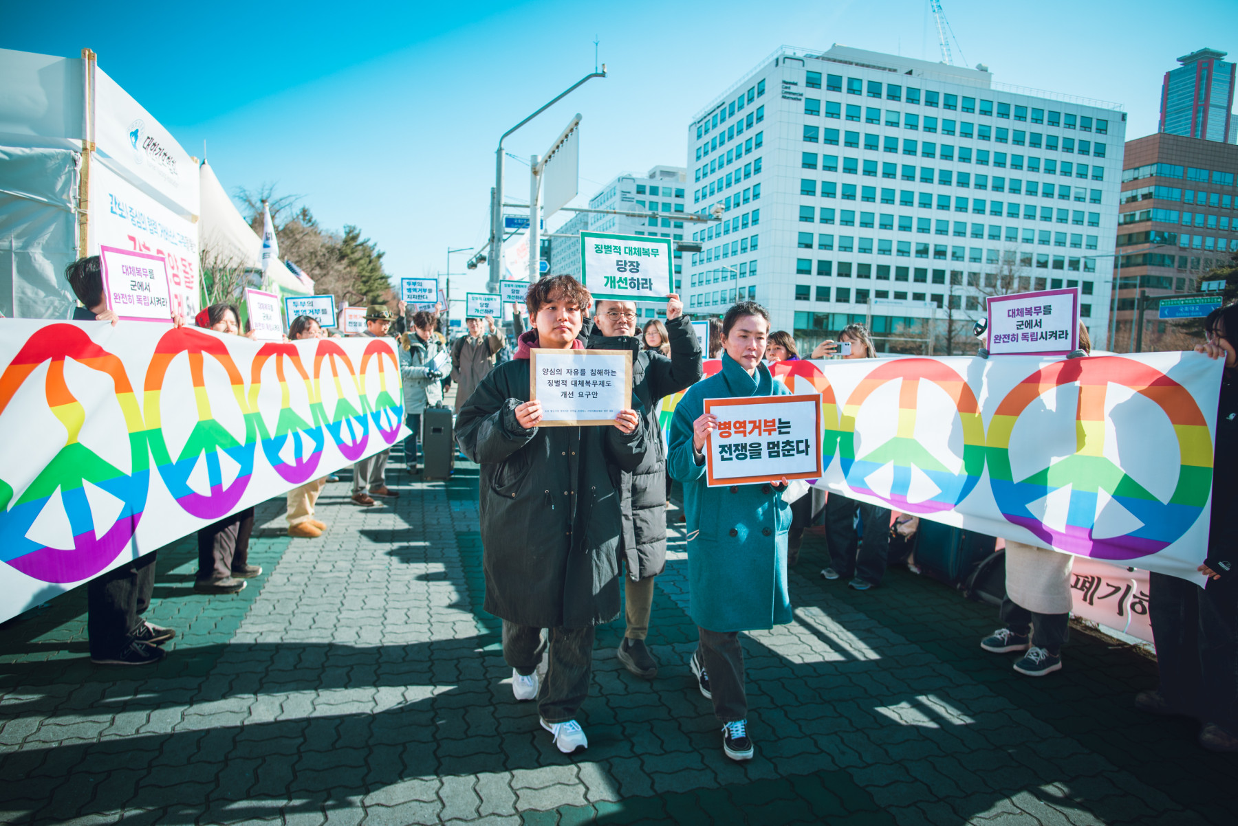 - 기자회견이 끝난 뒤에는 ‘평화의 길’을 함께 걷는 퍼포먼스를 하면서 성일종 국방위원회 위원장, 부승찬 국방위원회 민주당 간사, 강대식 국방위원회 국민의힘 간사 의원실에 대체복무 개선 요구안을 제출했다.