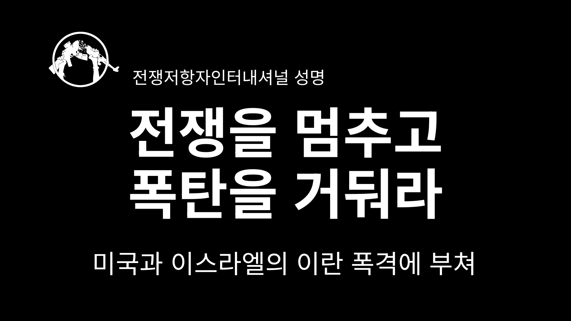 평화는 이란 사람들 뿐만 아니라 모든 지역의 사람들에게 확립되어야 한다. 우리의 요구는 단호하다. 공격을 중단하고, 무기를 거두고, 전쟁의 확산을 방지하고, 군사주의의 길을 거부하라. 연대와 정의와 평화는 선택 사항이 아니고, 이 모든 것들은 인류의 공동 책임이며, 전쟁 체계로부터 반드시 지켜내야 할 것들이다.