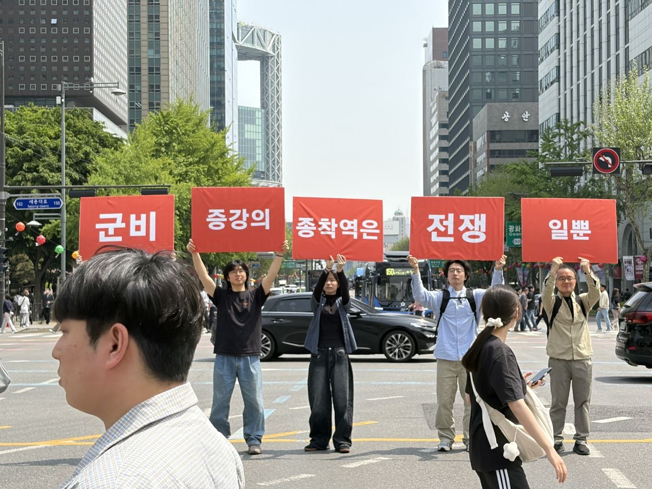 - 기자회견 참가자들은 이러한 상황에서 한국 정부가 취해야 할 노력은 ‘K-방산’의 성과를 자랑하며 무기 산업을 적극적으로 홍보하는 것이 아니라, 평화를 위한 노력이라는 점을 강조하며 모든 순서를 마무리 했습니다. 기자회견 직후에는 광화문 사거리에서 군비경쟁의 결과가 군사적 긴장과 갈등을 높일 수 있다는 경각심을 던지는 피켓팅을 진행했습니다. 끝.
